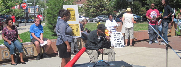 Vietnam vet addresses the crowd at Saturday's protest.